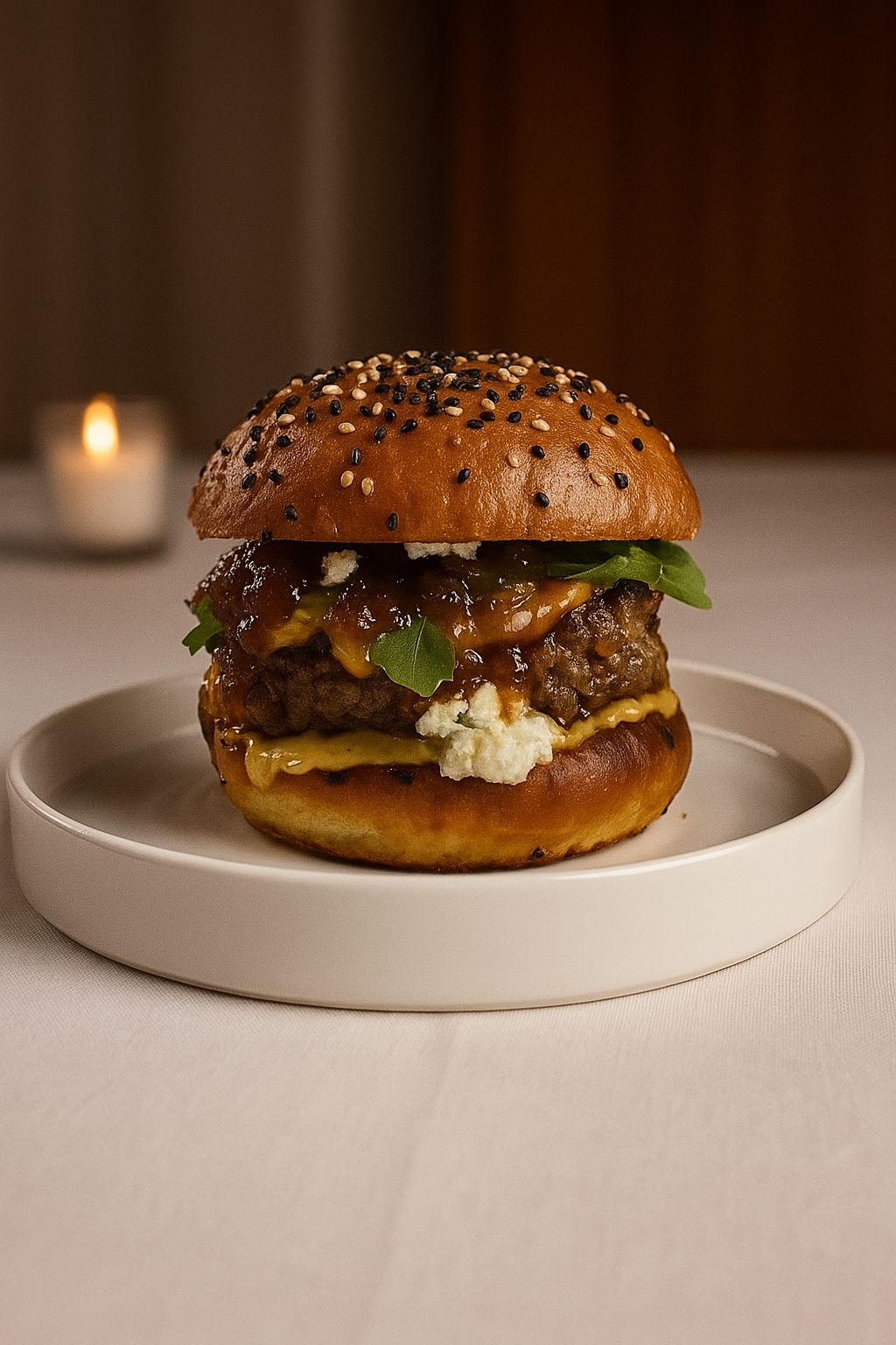 Our signature Beef patty, cheddar cheese, Grana Padano cheese,Arugula topped with Figgy jam & Blue cheese, Vinegar reduction, House pickles hot mayo